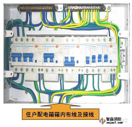 穿線完成后,可進行安裝接線工作,在墻體刷白后進行。安裝前,先將箱體內(nèi)垃圾清理干凈,再將開關(guān)及其底座安裝在箱體底部,再將零線端子排、地線端子排安裝上,然后接線。接線必須按美觀大方的原則進行: