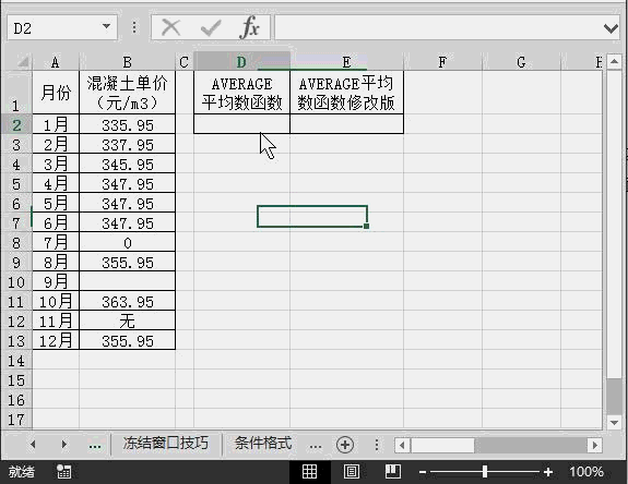 第二個(gè)函數(shù)公式”=AVERAGE(IF(B2:B13<>0,B2:B13))”。