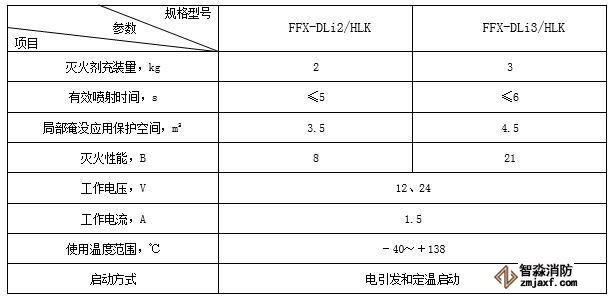 車用鋰電池箱D類干粉自動滅火裝置主要技術(shù)參數(shù)