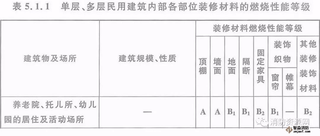 一、當設置在單層、多層民用建筑時,內(nèi)部各部位裝修材料的燃燒性能等級,不應低于《建筑內(nèi)部裝修設計防火規(guī)范》5.1.1的規(guī)定。