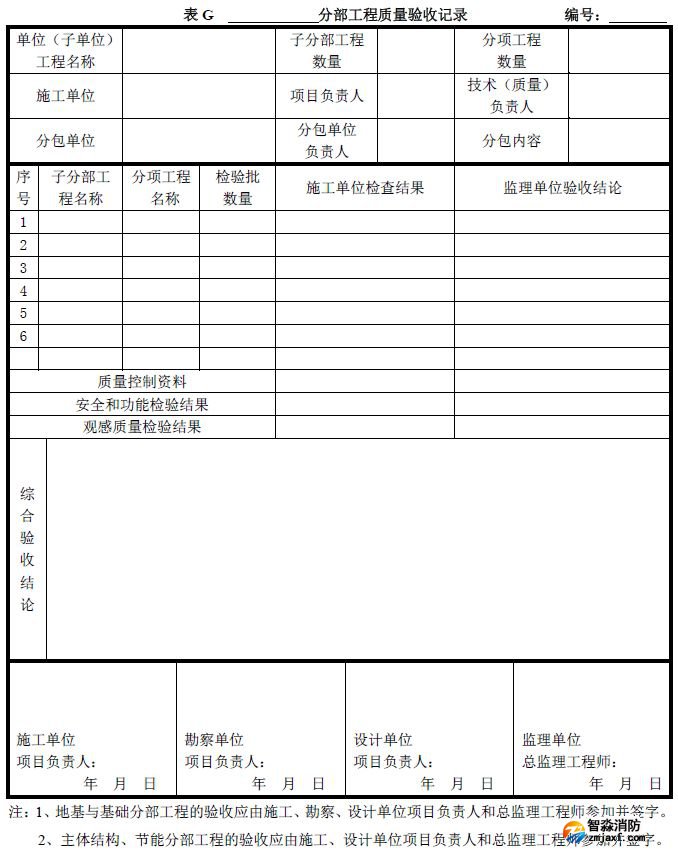 分部工程質(zhì)量驗收記錄可按《建筑工程施工質(zhì)量驗收統(tǒng)一標(biāo)準(zhǔn)》附錄G填寫。