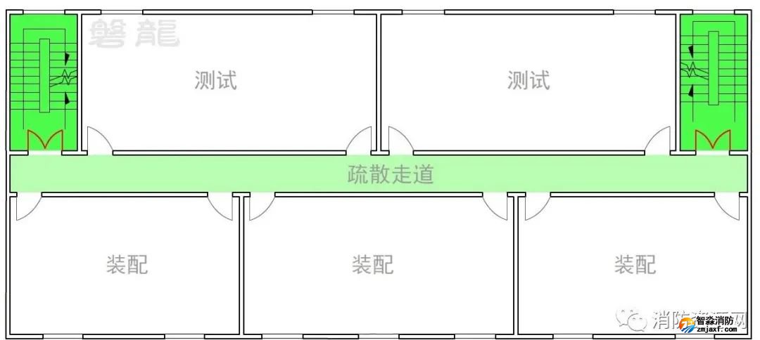 1、在圖示6的廠房建筑中,同樣應采用“房間”→“疏散走道”→“安全出口”的基本設置原則,確保風險逐級降低,廠房倉庫疏散走道兩側的隔墻,其燃燒性能和耐火等級,應符合規(guī)范要求。