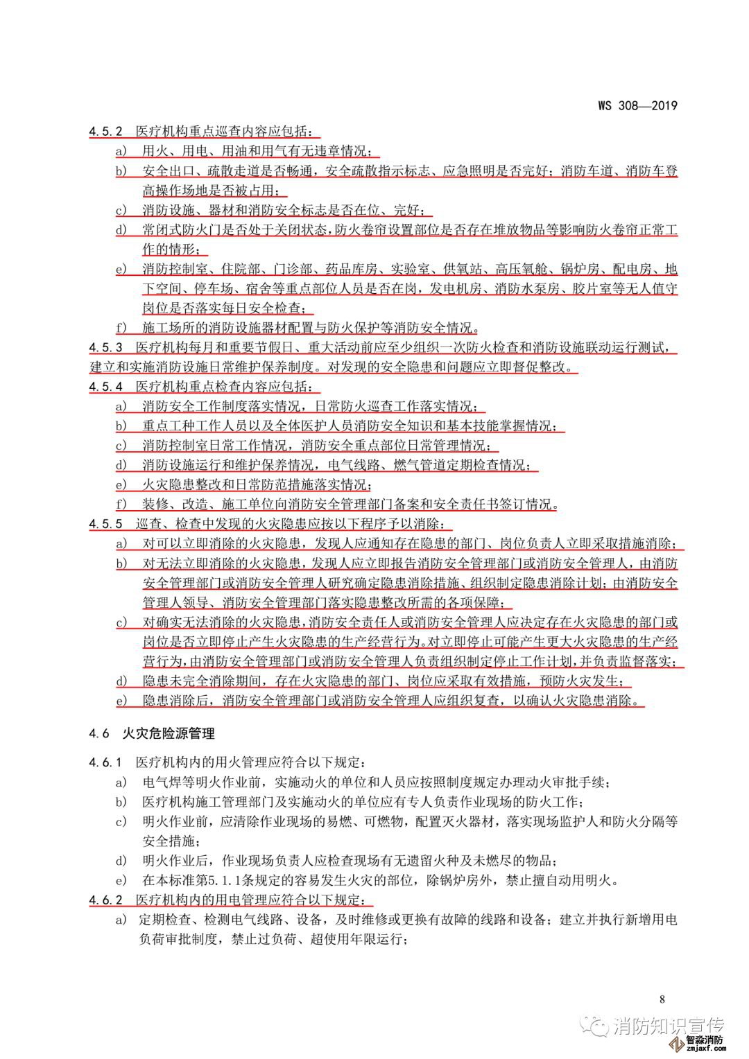 4.8.2 醫(yī)療機(jī)構(gòu)每年應(yīng)組織管理人員開展一次消防安全教育培訓(xùn),培訓(xùn)內(nèi)容除包括 4.8.1 規(guī)定的內(nèi)容外,還包括: