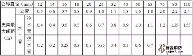 消防管道(鋼管)支架間距符合規(guī)范要求: