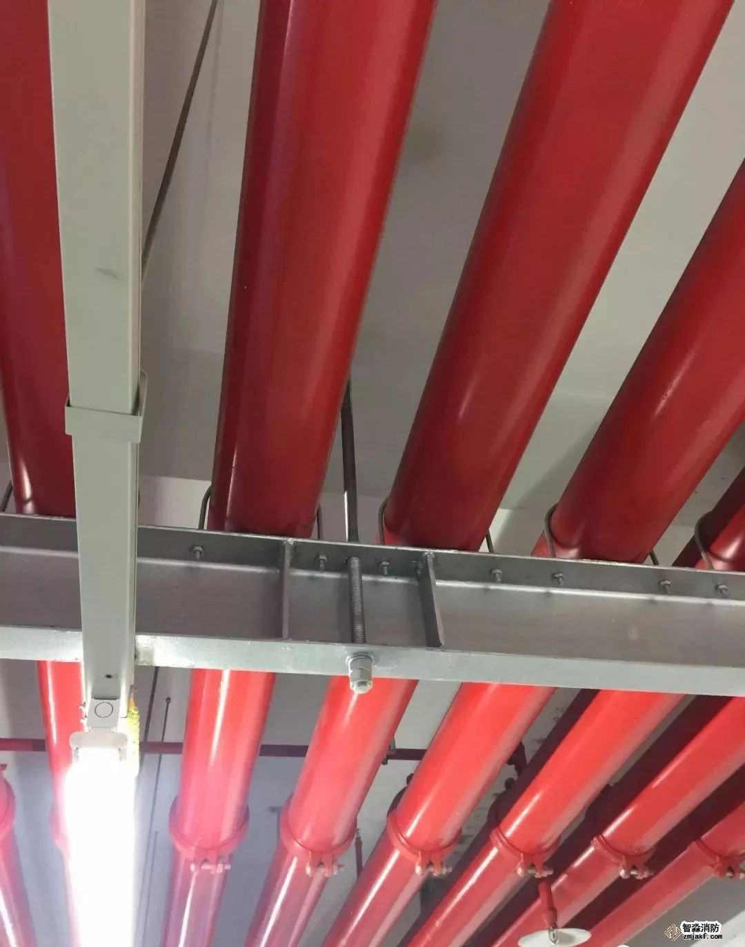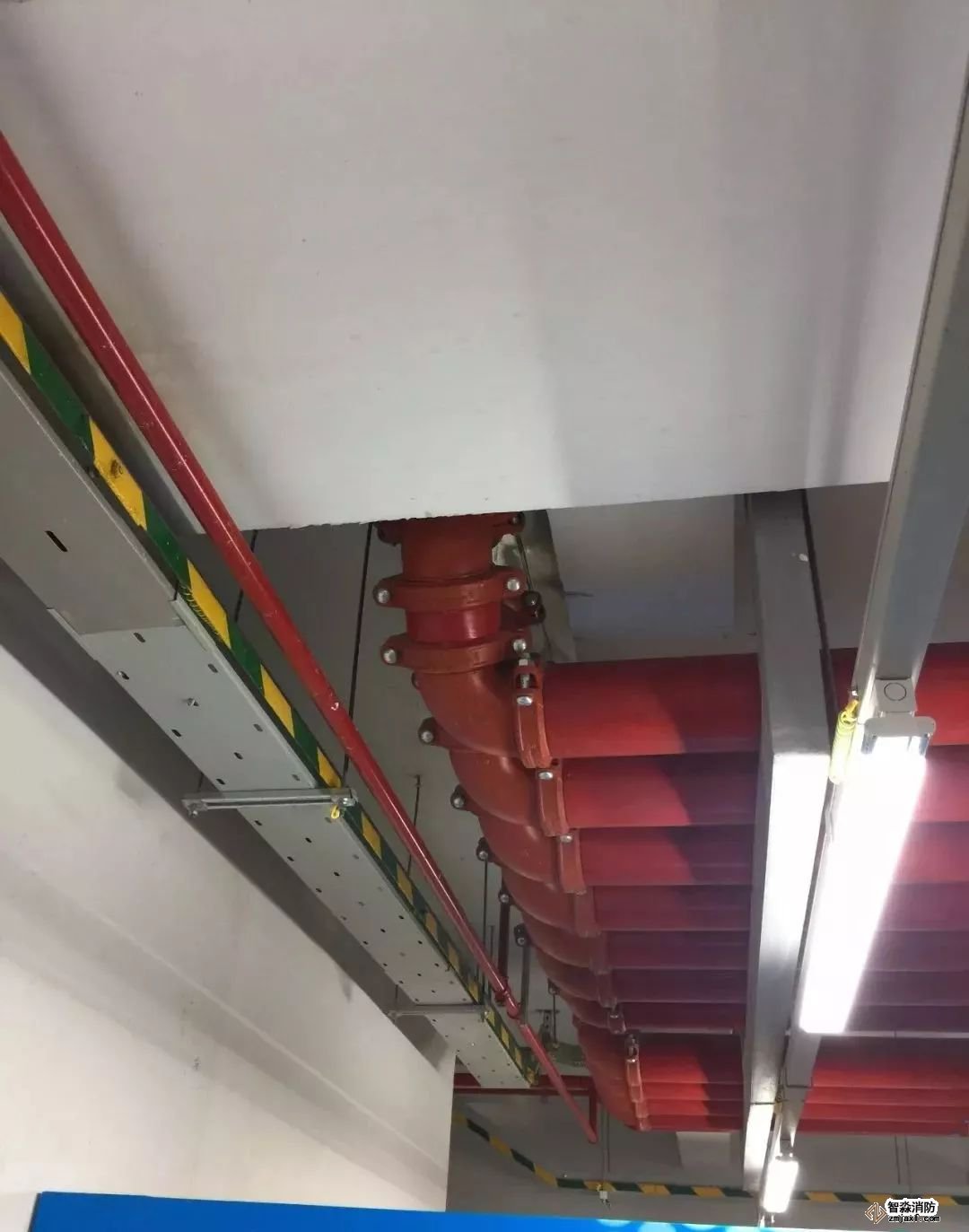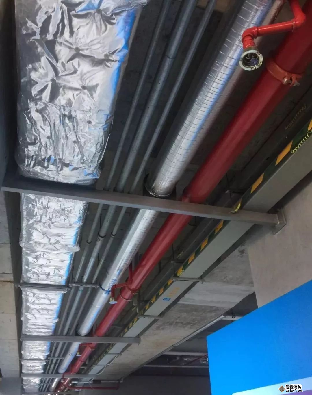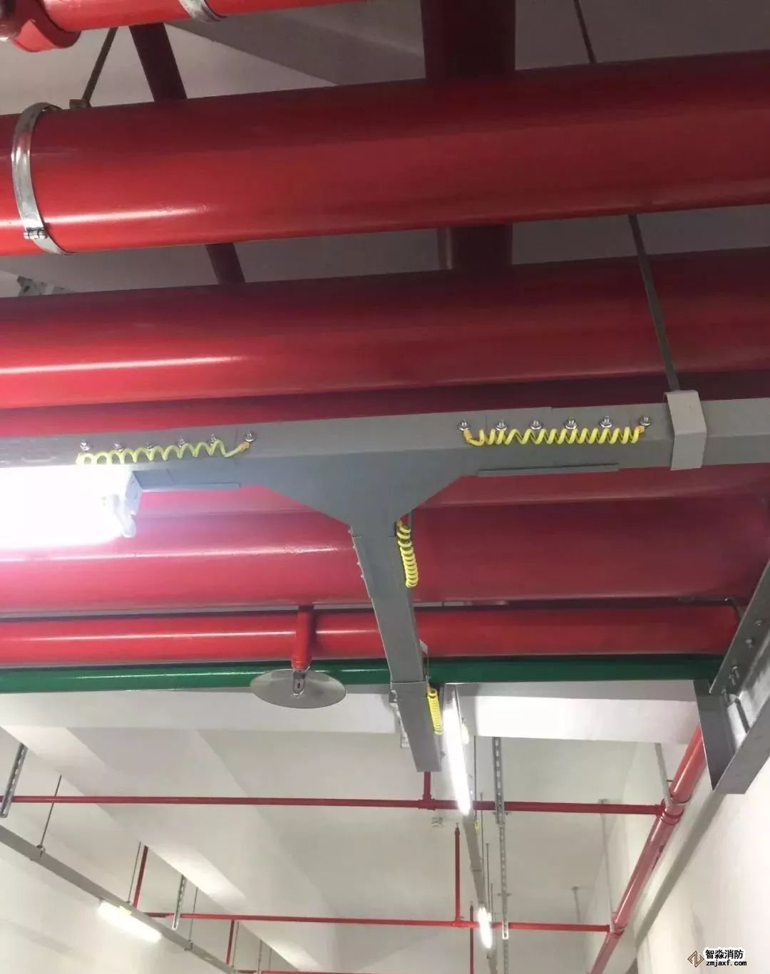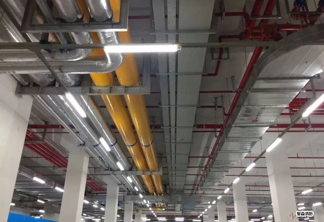 消防噴淋管道間距一致,標識清楚、成排成線。