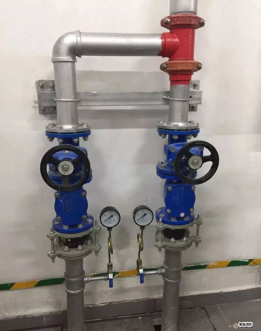 消火栓箱安裝,箱體外填塞密實,管道安裝垂直,栓頭距地1.1米。