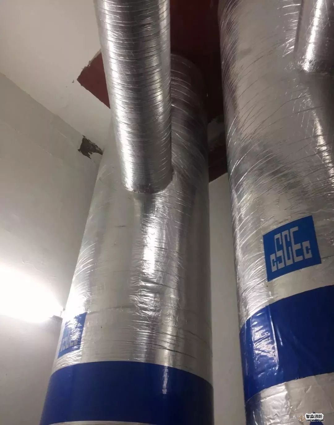 風管穿墻,防火泥封堵到位,界面清楚。