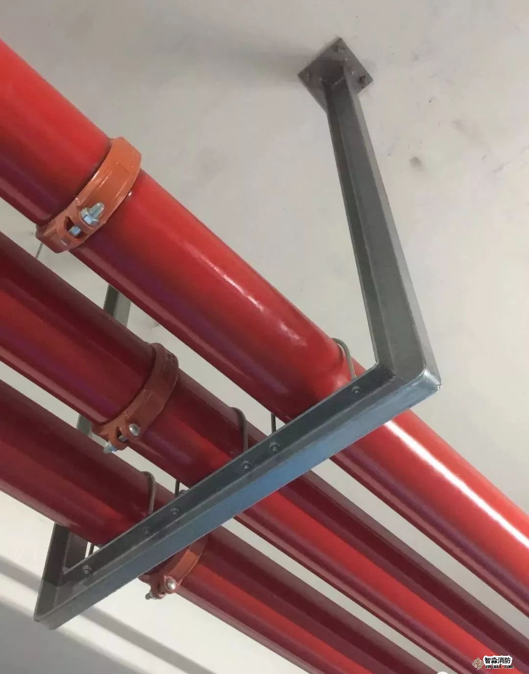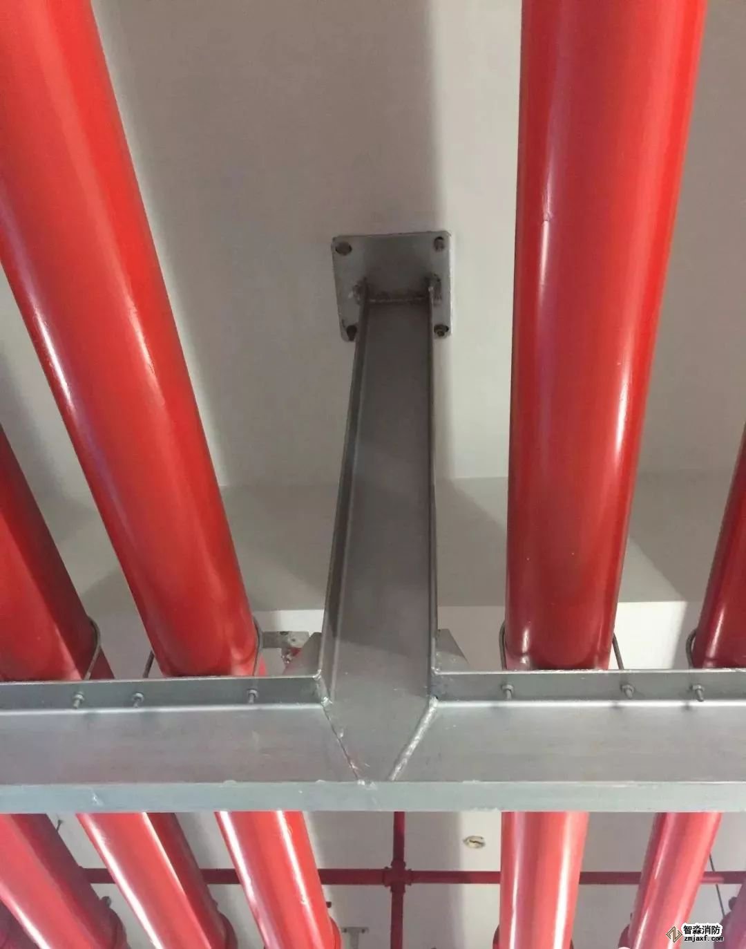 噴淋支管橫平豎直,標識清楚、支架布置間距合理。