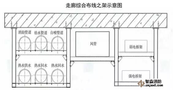 5、橋架和水管多層水平布置時(shí),橋架應(yīng)位于水管上方;高中壓在上,低壓在下,經(jīng)常檢修的在下;與吊頂表面末端設(shè)施連接的管線宜貼近吊頂,減少交叉;