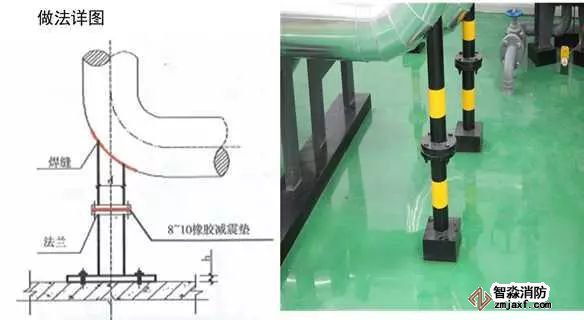 根據(jù)管道公稱直徑大小,選擇不同厚度的鋼板,加工成肋板,校正管道的垂直度,先將肋板底端焊接固定到管道周?chē)闹Ъ苌?,再將肋板?cè)面與管道焊接,檢查焊縫,再次校正管道垂直度,無(wú)誤后,刷防銹漆、面漆,設(shè)計(jì)要求保溫的進(jìn)行管道保溫。