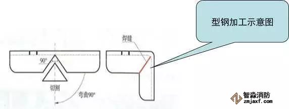 根據(jù)管道的數(shù)量、管徑、走向、空間布局選用合適的支架形式;下料應(yīng)采用切割機(jī),用臺(tái)鉆鉆螺栓孔(嚴(yán)禁采用氣割吹孔),孔徑為螺栓直徑+2mm;型鋼切割面應(yīng)打磨光滑,端部倒圓弧角,倒角半徑為型鋼端面邊長(zhǎng)的1/3~1/2,支架拐角處應(yīng)采用45°拼接,拼接縫采用焊接,焊縫應(yīng)飽滿、打磨平滑;支架應(yīng)先刷防銹漆兩道,再刷面漆一道,埋地支架埋入部分及地面以上50mm(±1mm)內(nèi)刷防銹漆兩道后再瀝青防腐面漆兩道。