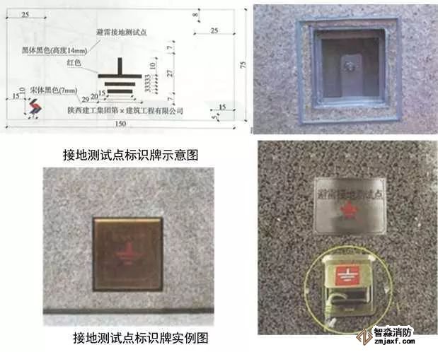 1、避雷接地測(cè)試點(diǎn):預(yù)埋扁鐵鋼及100x100x50線盒,線盒與墻面平齊,鍍鋅扁鋼鉆φ12孔,安裝防松墊片及蝴蝶螺母,螺母居預(yù)埋盒中心。編織軟銅線一端連接在蝴蝶螺母上,另一端壓接銅鼻子用于接地測(cè)試。銅質(zhì)面板用螺絲固定在預(yù)埋盒上,在測(cè)試點(diǎn)正上方50mm處粘貼銅質(zhì)或不銹鋼標(biāo)識(shí)牌,標(biāo)識(shí)牌應(yīng)標(biāo)明接地測(cè)試地點(diǎn)、接地符號(hào)、施工單位、編號(hào),標(biāo)高尺寸及位置與相鄰沉降觀測(cè)點(diǎn)及標(biāo)識(shí)牌一致。