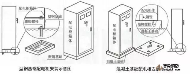 1、配電柜安裝:參照配電柜的寬厚尺寸,制作10號(hào)槽鋼基礎(chǔ),按設(shè)計(jì)位置安裝,在型鋼基礎(chǔ)的下面四角適當(dāng)?shù)奈恢勉@孔,在地面相應(yīng)位置用膨脹螺栓固定基礎(chǔ)型鋼,調(diào)整水平度;將配電柜與型鋼基礎(chǔ)對(duì)正,然后用螺栓固定,成排配電柜兩兩之間側(cè)面用螺栓連接;按系統(tǒng)圖或接線圖要求將電纜、電線與相應(yīng)的電器端子連接;將電源的接地線(PE線)、各回路的接地線(PE線)、金屬導(dǎo)管的接地線接在配電柜的接地端子上。配電室房門(mén)應(yīng)加設(shè)防水防火擋鼠板,高度不低于0.7m。