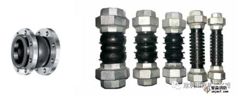 2. 水泵、冷水機(jī)組、風(fēng)機(jī)盤(pán)管、空調(diào)機(jī)組等機(jī)電設(shè)備與水管之間用軟管連接,不使振動(dòng)傳遞給管路。軟管有兩類(lèi):橡膠軟接管和不銹鋼波紋管。橡膠軟接管隔振減噪的效果很好,缺點(diǎn)是不能耐高溫和高壓,耐腐蝕性也差。在空調(diào)與采暖的水系統(tǒng)中多用橡膠接管。不銹鋼波紋管能耐高溫、高壓和耐腐蝕,但價(jià)格較貴,一般用于制冷劑管路的隔振。