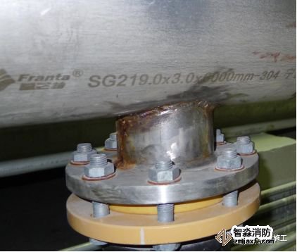 2.1 質(zhì)量通病:不銹鋼法連采用普通碳鋼螺栓或鍍鋅螺栓,而未采取絕緣措施,致使發(fā)生電化學(xué)腐蝕。