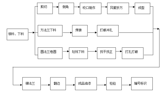 ① 風管法蘭平整,焊縫飽滿,無缺口。‚