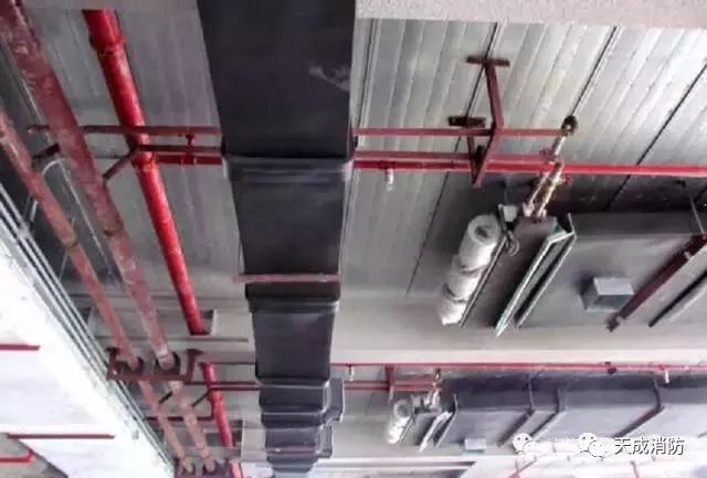 風管穿越防火墻應設有鋼板厚度1.6mm及以上的套管。套管內部應用玻璃棉等不燃材料封堵,外面用防火泥抹面。