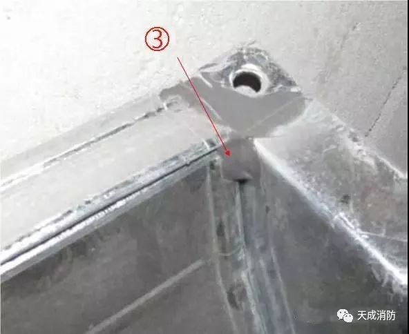 ③ 共板法蘭風管四角制作豁口應該打膠嚴密,打膠應該抹平整,不出現(xiàn)堆疊現(xiàn)象。