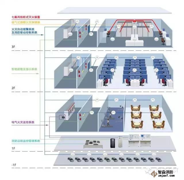 (2)顯示系統(tǒng)的驅(qū)動裝置的正常工作狀態(tài)和動作狀態(tài),防護(hù)區(qū)域中的防火門窗、防火閥、通風(fēng)空調(diào)等設(shè)備的正常工作狀態(tài)和動作狀態(tài);