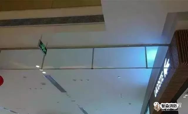 5)擋煙垂壁。擋煙垂壁是用于分隔防煙分區(qū)的裝置或設(shè)施,可分為固定式或活動(dòng)式。固定式可采用隔墻、樓板下不小于500mm的梁或吊頂下凸出不小于500mm 的不燃燒體;活動(dòng)式擋煙垂壁本體采用不燃燒體制作,平時(shí)隱藏于吊頂內(nèi)或卷縮在裝置內(nèi),當(dāng)其所在部位溫度升高,或消防控制中心發(fā)出火警信號(hào)或直接接收煙感信號(hào)后,置于吊頂上方的擋煙垂壁迅速垂落至設(shè)定高度,限制煙氣流動(dòng)以形成“儲(chǔ)煙倉(cāng)”,便于排煙系統(tǒng)將高溫?zé)煔庋杆倥懦鍪彝狻?/p>
