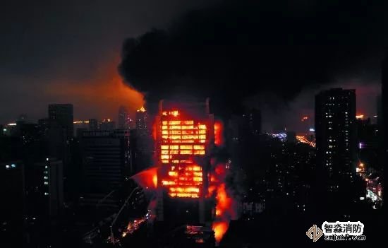 酒店的起火原因與央視大樓相似,都是因煙花掉落建筑外表后,引起外墻裝飾及保溫材料燃燒所致。隨后在煙囪效應(yīng)的作用下,火勢迅速蔓延、擴大,致使建筑外窗破碎,引燃室內(nèi)可燃物,形成大面積立體燃燒。所幸,消防官兵趕到后,及時通過啟動應(yīng)急廣播、現(xiàn)場搜救等方式,將酒店內(nèi)全部人員疏散至安全地帶,無任何人員傷亡。