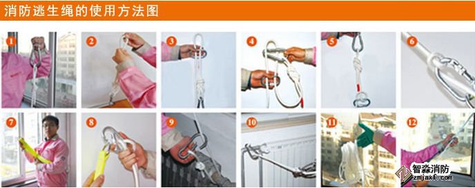 緩降逃生繩是把逃生繩、緩降器、安全帶融為一體,繩子內部為鋼絲,外部為阻燃棉,它可以安全、簡單、方便、快捷地使逃生人員安全降落到地面,并且可以快捷、多次重復使用逃生。