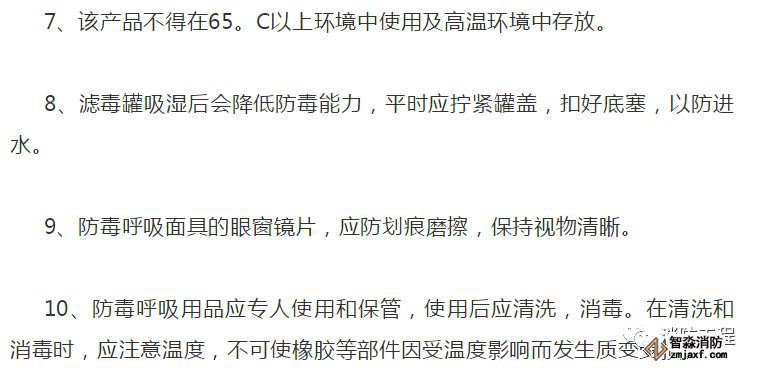 6、應嚴格遵守濾毒罐的有效時間。在使用過程必須記錄濾毒罐使用過的時間、毒物性質、濃度等。若記錄卡片上累計使用時間達到濾毒罐規(guī)定的時間,應立即停止使用。在使用過程中嚴禁隨意擰開濾毒罐(盒)的蓋子,并防止水或其它液體進入罐(盒)中。