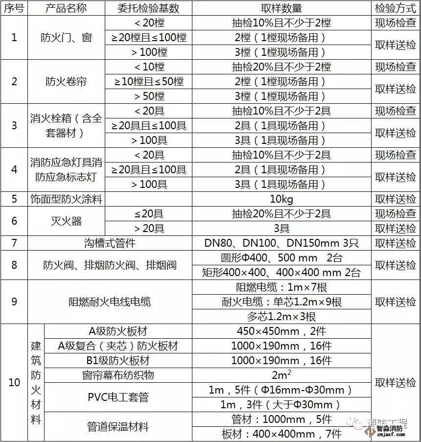 工程建設(shè)領(lǐng)域選用消防產(chǎn)品委托檢驗基數(shù)及取樣數(shù)量列表