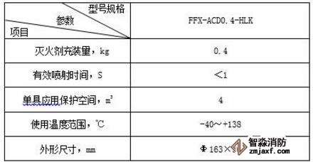 車用鋰電池箱D類干粉自動滅火裝置主要技術(shù)參數(shù)