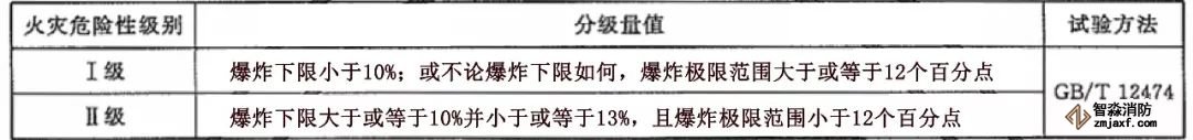 以上內容參考中華人民共和國公共安全行業(yè)標準易燃易爆危險品 火災危險性分級及試驗方法 第1部分:火災危險性分級 GA/T 536.1-2013,僅供交流,依據(jù)以上內容所做的任何決策、作為或不作為,后果由行為人自行負責。