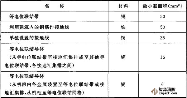 等電位聯(lián)結(jié)帶、接地線和等電位聯(lián)結(jié)導(dǎo)體的材料和最小截面積