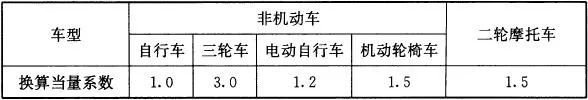 表6.1.2 非機(jī)動車及二輪摩托車車輛換算當(dāng)量系數(shù)