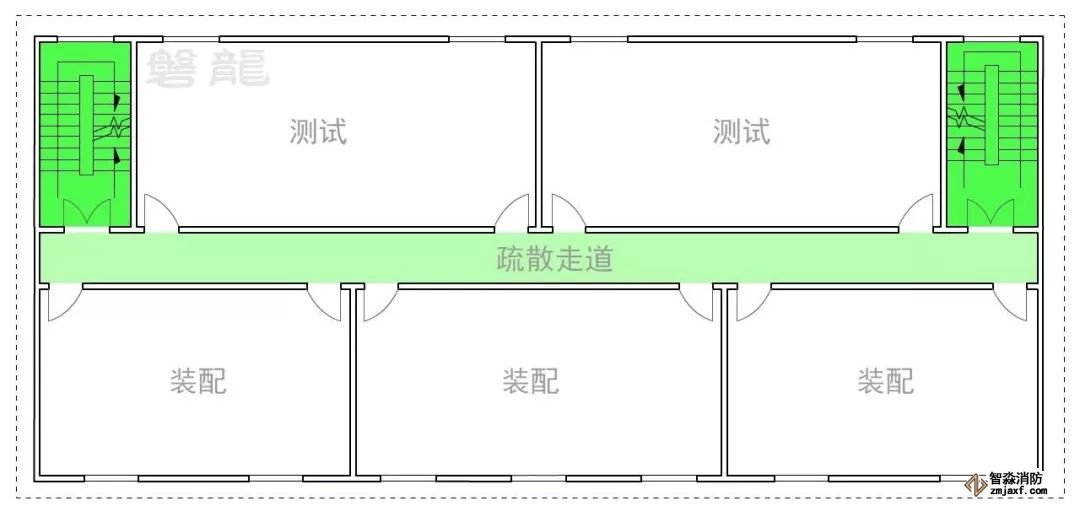 1、室內(nèi)房間屬于危險(xiǎn)區(qū)域,一旦發(fā)生火災(zāi),人員應(yīng)迅速疏散至相對(duì)安全的次危險(xiǎn)區(qū)域(疏散走道),通過(guò)疏散走道疏散至安全出口(圖示1)。