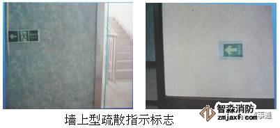 墻上型疏散指示標志,箭頭應(yīng)該指向最近的出口(右邊);應(yīng)安裝在距地面1m以下。