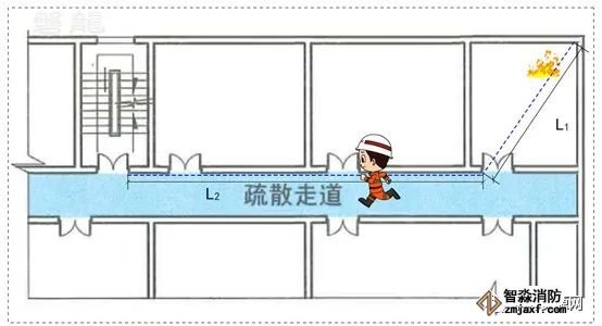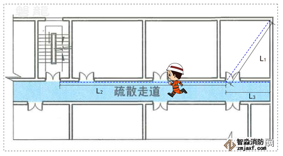 疏散走道是用于人員疏散通行至安全出口或相鄰防火分區(qū)的走道,疏散走道的兩側(cè)隔墻和樓板應滿足相應建筑耐火等級的燃燒性能和耐火極限要求,疏散走道不能有可燃物,也不能作為工作或作業(yè)場所。因此,通常情況下,疏散走道不會是火災發(fā)生部位,人員也不會在走道過多逗留。另一方面,疏散走道兩側(cè)房間內(nèi)的疏散距離,也從側(cè)面限制了疏散走道的長度。