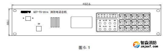 GST-TS-Z01A 型消防電話總機(jī)外形尺寸及結(jié)構(gòu)示意圖如圖6-1: