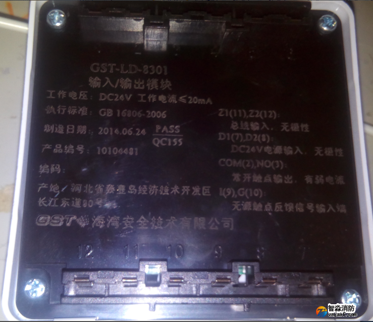 GST-LD-8301模塊的外形尺寸及結(jié)構(gòu)與GST-LD-8319輸入模塊相同,安裝方法也相同,其對外端子示意圖如下: