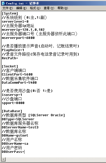 配置后臺控制軟件后打開c:program files GSTNet_ClientMaintain目錄下的配置文件config.ini,其中的設(shè)置項有:[Server]