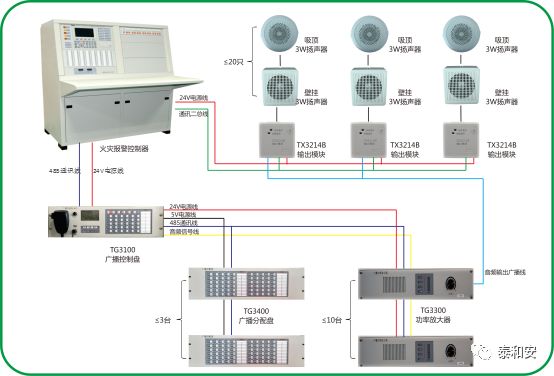 5. 分區(qū)可擴展,最大支持?jǐn)U展3個TG3400廣播分配盤,每個廣播分配盤60區(qū);