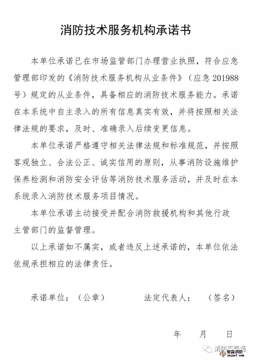 企業(yè)法定代表人在《消防技術(shù)服務機構(gòu)從業(yè)承諾書》簽字并加蓋本單位公章,上傳本系統(tǒng)。