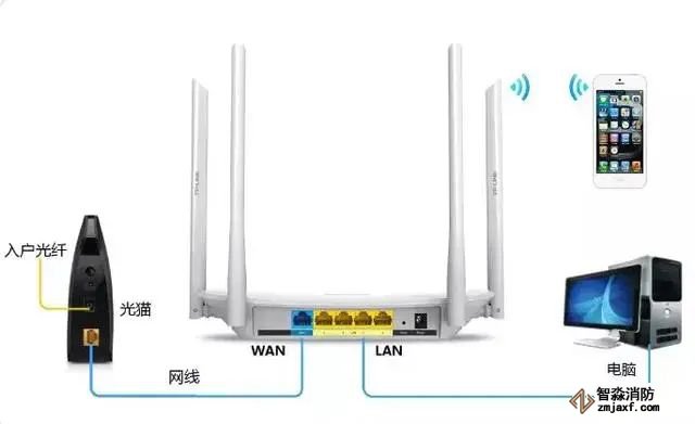 3.和原來路由器連接,把原來有線路由器的網(wǎng)線接口連接到無線路由器的WAN接口,注意是WAN接口。