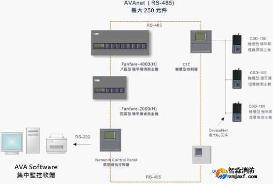 FANFARE-2000四區(qū)型極早期煙霧偵測主機(jī),可以通過輸入模塊接入火災(zāi)自動報警報警控制器;也可以全部聯(lián)網(wǎng),并由AVA系統(tǒng)管理軟件對整個系統(tǒng)進(jìn)行設(shè)置和監(jiān)控。AVA系統(tǒng)管理軟件安裝在消防控制室的計算機(jī)上,用戶可以通過它對整個探測系統(tǒng)的所有性能進(jìn)行設(shè)置、調(diào)試和監(jiān)控。