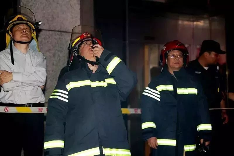 21時(shí)25分許,周詳總隊(duì)長(zhǎng)、梁新國(guó)政委到達(dá)現(xiàn)場(chǎng)。根據(jù)災(zāi)情現(xiàn)狀,周詳總隊(duì)長(zhǎng)要求:組織到場(chǎng)力量全力搜救被困人員;充分利用固定消防設(shè)施進(jìn)行內(nèi)攻滅火堵截;消防車停靠、連接大樓水泵接合器,確保建筑內(nèi)部消防管網(wǎng)壓力、流量不足情況下,滿足前方滅火需要;調(diào)派70米以上舉高車到場(chǎng)壓制外墻蔓延火災(zāi);參戰(zhàn)指戰(zhàn)員加強(qiáng)防護(hù)、編組作戰(zhàn),確保不發(fā)生人員傷亡。