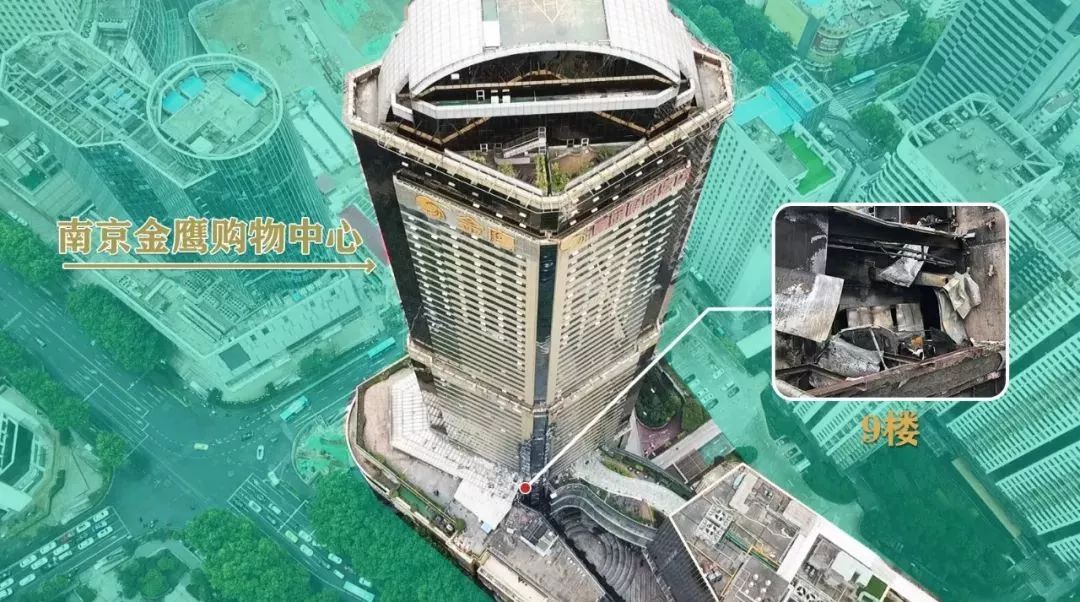 金鷹A座購(gòu)物中心由南京金鷹國(guó)際集團(tuán)有限公司開發(fā)建設(shè),其中商業(yè)部分于1996年4月份投入使用。建筑地上58層,地下2層,建筑高度218米,總建筑面積14.8萬(wàn)平方米,是典型的商業(yè)綜合體建筑,涉及商場(chǎng)、酒店、餐飲、影院、寫字樓等多種業(yè)態(tài)。起火原因?yàn)?樓裝修改造工程的施工人員在拆除油煙機(jī)設(shè)備過程中違規(guī)動(dòng)火作業(yè)引燃可燃物,火勢(shì)沿玻璃幕墻縫隙及外墻迅速向上、下樓層蔓延,大樓部分外立面及房間過火,主要燃燒物質(zhì)為大樓外墻材料。