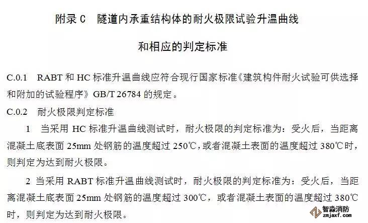 對于通行機動車的三類隧道,火災(zāi)升溫曲線應(yīng)采用本規(guī)范附錄C第C.0.1條規(guī)定的HC標(biāo)準(zhǔn)升溫曲線,耐火極限不應(yīng)低于2.00h;