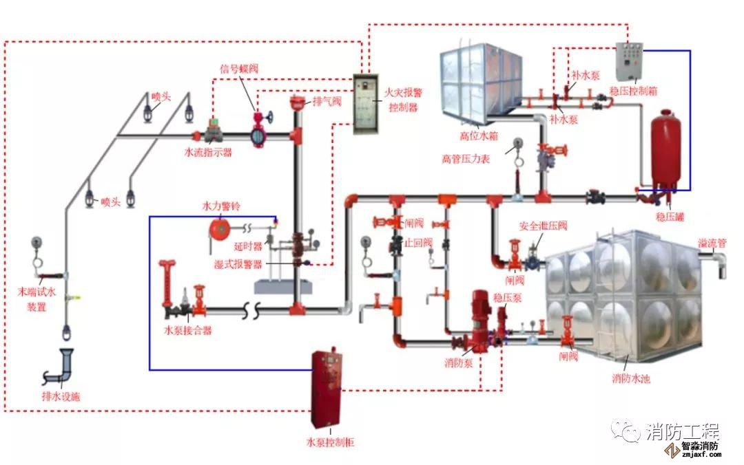 自動噴水滅火系統(tǒng)是由灑水噴頭、報警閥組、水流報警裝置(水流指示器或壓力開關(guān))等組件,以及管道、供水設(shè)施組成的,并能在發(fā)生火災(zāi)時噴水的自動滅火系統(tǒng)。自動噴水滅火系統(tǒng)在保護(hù)人身和財產(chǎn)安全方面具有安全可靠、經(jīng)濟(jì)實用、滅火成功率高等優(yōu)點,廣泛應(yīng)用于工業(yè)建筑和民用建筑。