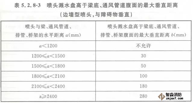5.2.9 當梁、通風管道、排管、橋架寬度大于1.2m時,增設(shè)的噴頭應安裝在其腹面以下部位。