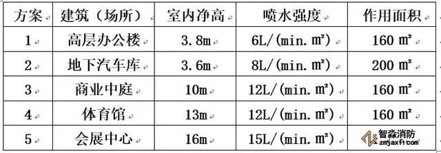(2) 民用建筑和廠房高大空間場所采用濕式系統(tǒng)設(shè)計(jì)基本參數(shù)