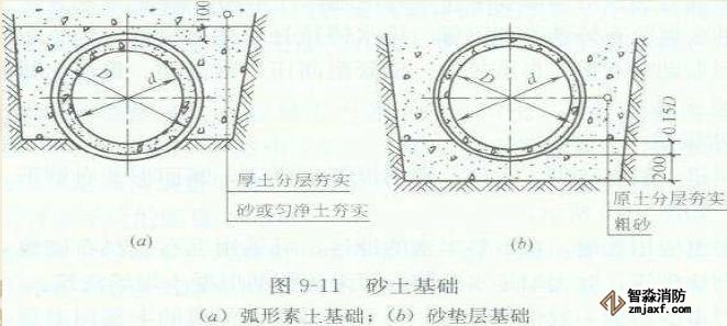 砂土基礎又叫素土基礎,它包括弧形素土基礎和砂墊層基礎。