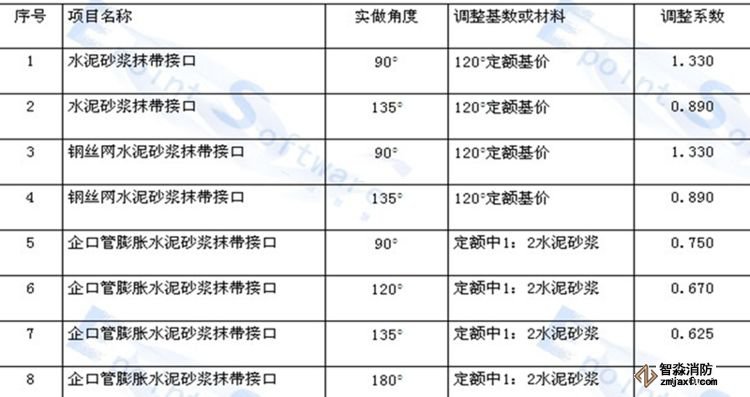 企口管的膨脹水泥砂漿接口和石棉水泥接口適于360度,其他接口均是按管座120度和180度列項的。如管座角度不同,按相應材質(zhì)的接口做法,以管道接口調(diào)整表進行調(diào)整(見下表):